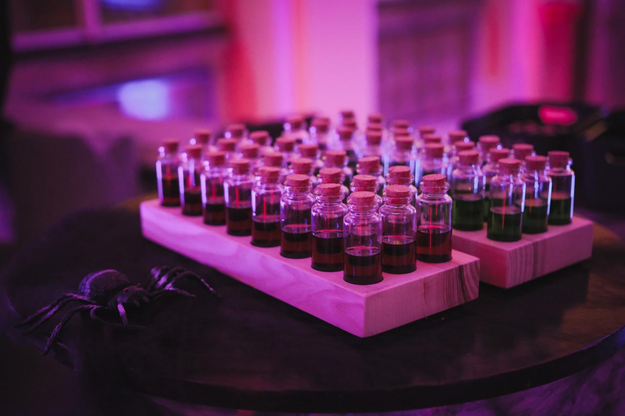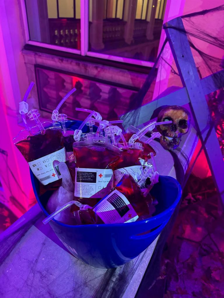 Všichni ti, kteří došli v kostýmu do 21:30, obdrželi welcome drink v podobě stylového elixíru, který si připravil spolek BOTUNICNENI. Stejně jako nabídku na baru, kde měli pro všechny krvežíznivé připravenou krevní transfuzi (drink Vampire blood) a další záhadné drinky a elixíry, které k pořádné párty patří! :-)