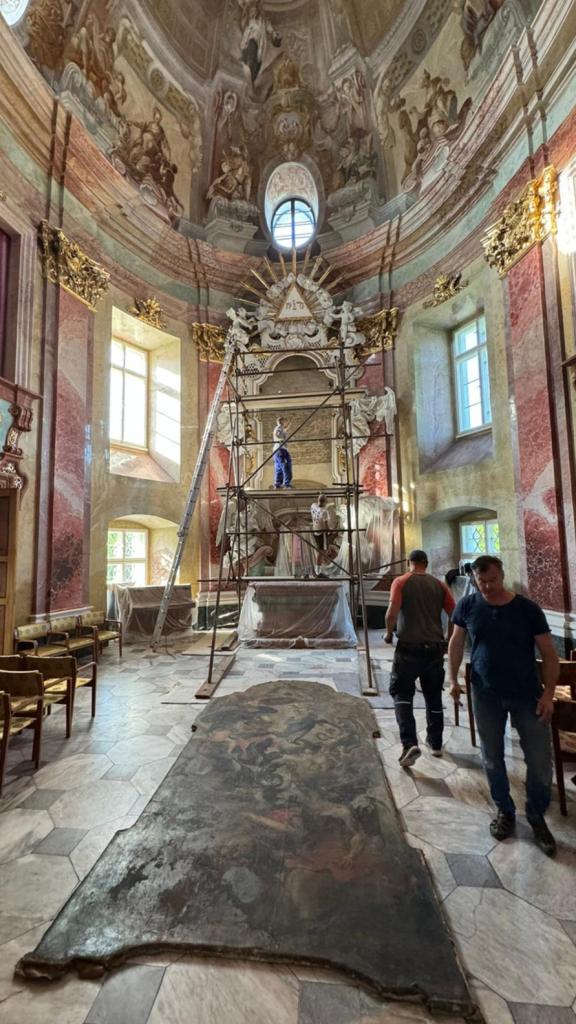 Po dobu, kdy bude obraz vytažený z ozdobného rámu, je jeho místo zaplněno vytištěným plátnem s fotografií původního obrazu, aby se návštěvníci kaple nemuseli dívat na prázdný rám.